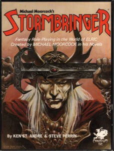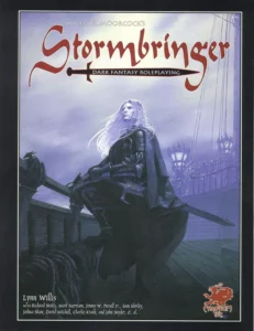 Stormbringer es un juego de rol de fantasía oscura basado en las novelas del escritor Michael Moorcock. La particularidad de esta ambientación consiste en que es una de las varias visiones que el Sr. Moorcock presenta de su Multiverso, o multitudes de Universos convergentes en una idea y en un ser, el Equilibrio y El Campeón Eterno.