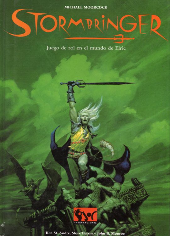 Y Michael Moorcok, el escritor, puso los derechos de explotación en manos de quién le llevaba el tema. Y apareció en el mercado Stormbringer 1º Ed en 1981. La editorial encargada de sacar este producto fue Chaosium. [Nota: los años que aparecen son la publicación en inglés]